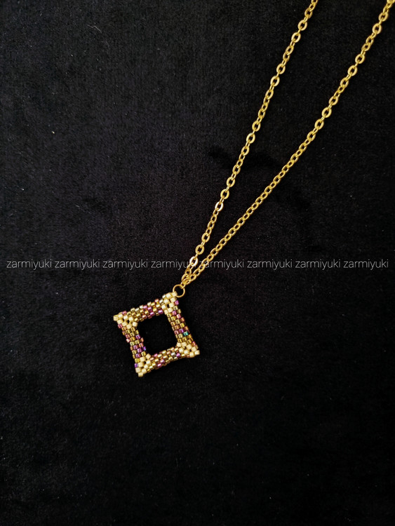 گردنبند دستساز با منجوق دلیکا میوکی ژاپن طرح مربعی