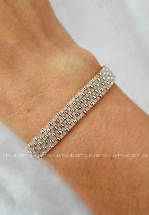 تمام متریال و منجوقهای استفاده شده در کارها از محصولات میوکی ژاپن هستند که کیفیتی درجه یک دارند و با نمونه های منجوقهای ایرانی،چک یا چینی هم از نظر یک دست بودن سایز منجوقها و هم از نظر ثبات رنگ اصلا قابل مقایسه نیستند و حتی کیفیتی خیلی بالاتر از نمونه ی کپی شده ی این محصول به نام fgb دارند