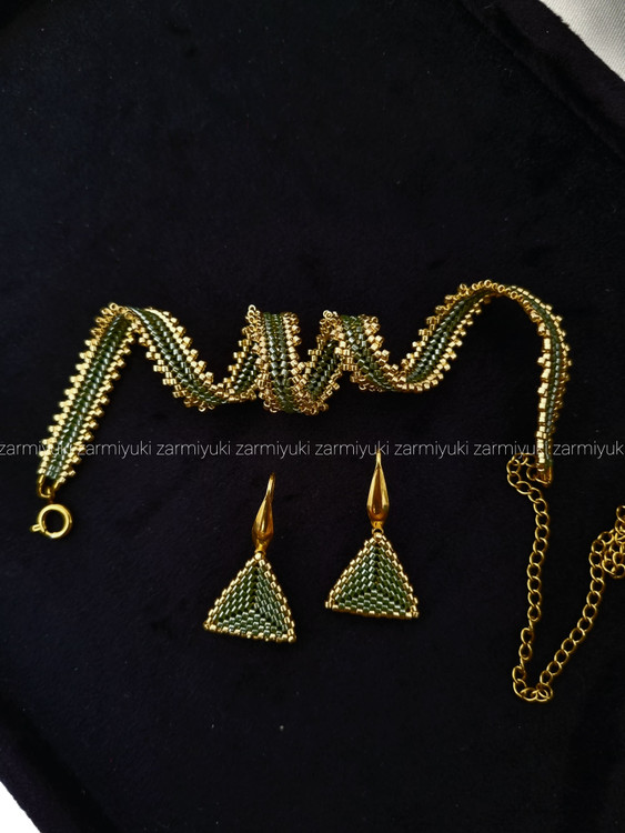 نیم ست چوکر (گردنبند بیخ گلو) و گوشواره دستساز با منجوق دلیکا میوکی ژاپن