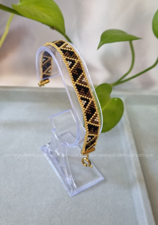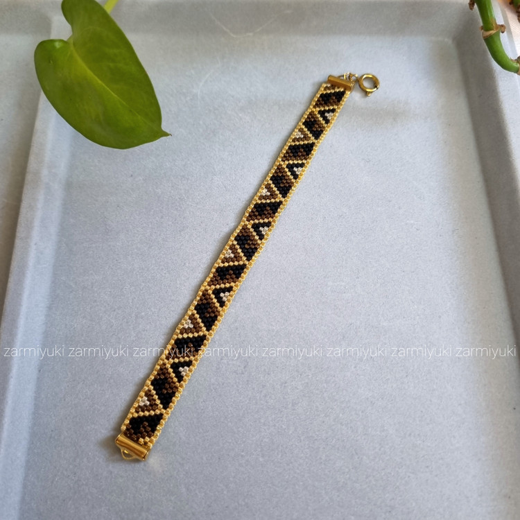 تمام متریال و منجوقهای استفاده شده در کارها از محصولات میوکی ژاپن هستند که کیفیتی درجه یک دارند و با نمونه های منجوقهای ایرانی،چک یا چینی هم از نظر یک دست بودن سایز منجوقها و هم از نظر ثبات رنگ اصلا قابل مقایسه نیستند و حتی کیفیتی خیلی بالاتر از نمونه ی کپی شده ی این محصول به نام fgb دارند